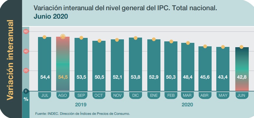 La inflación en junio marcó al 2,5%. Llegó a 43,9% medida interanualmente y acumula 14,1% en 2020.