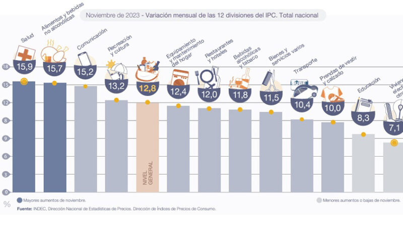Los precios al consumidor (#IPC) aumentaron 12,8% en noviembre de 2023 respecto de octubre y 160,9% interanual https://t.co/6Q7Qpw5m94 pic.twitter.com/kBlbo3ZI0x— INDEC Argentina (@INDECArgentina) December 13, 2023