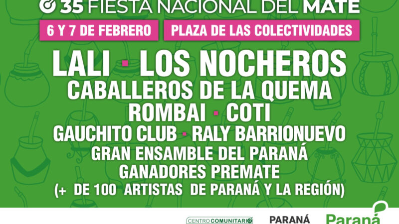 Ya está abierta la convocatoria para artistas de toda la provincia. Este año se realizará en Paraná, Maciá y Villaguay. La 35ª Fiesta Nacional del Mate invita a participar en las disciplinas: Música Folklórica y Tango, Cumbia y Tropical, Rock y Pop Nacional, además de Danzas Folklóricas y Contemporáneas. El formulario de inscripción online ya está disponible en la web fiestadelmate.parana.gob.ar