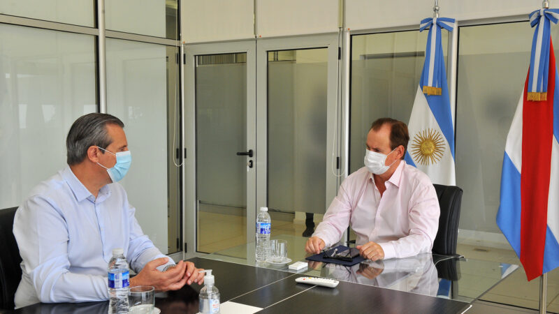 El gobernador Gustavo Bordet se reunió este viernes en el Centro Provincial de Convenciones con el intendente de Paraná, Humberto Adán Bahl, con quien analizó la agenda de obras que se desarrollan en la Capital entrerriana.