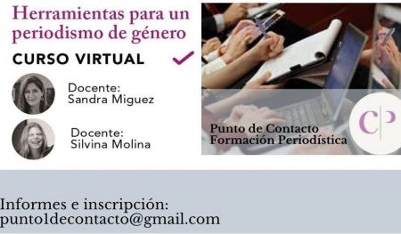 Es un curso virtual, que comienza el 13 de mayo. Trata sobre “Herramientas prácticas para un periodismo de género”.