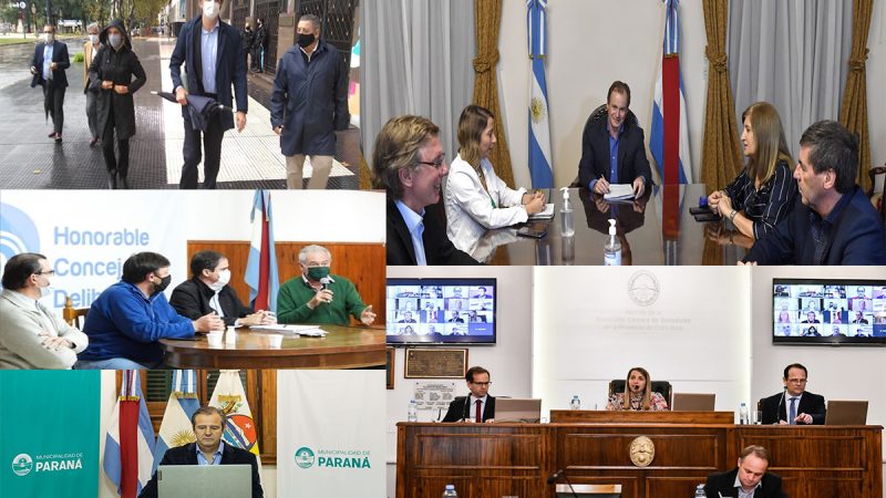 El intendente de Paraná, Adán Bahl participó de una teleconferencia con el Jefe de Gobierno de la Ciudad de Buenos Aires, Horacio Rodríguez Larreta, Pablo Javkin, intendente de Rosario, Gustavo Martínez, intendente de Resistencia y Gustavo Saadi, intendente de San Fernando del Valle de Catamarca.