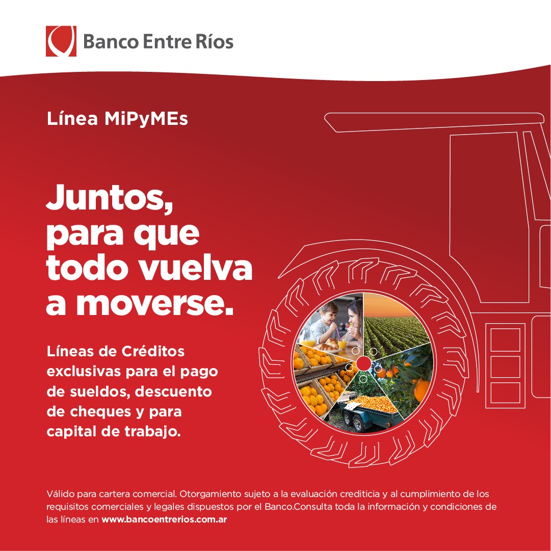 El Banco Entre Ríos implementó diversas líneas de crédito a tasa fija del 24 por ciento destinadas a auxiliar a las micro, pequeñas y medianas empresas (MiPyMEs) para el pago de sueldos, descuento en cheques y capital de trabajo, como paliativo ante las dificultades que presenta la caída de la actividad económica.