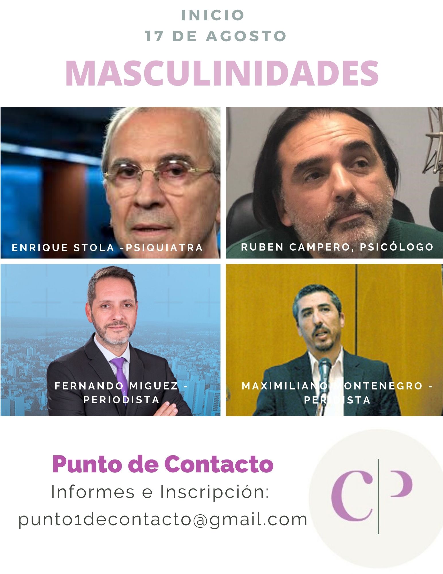 Enrique Stola, médico psiquiatra, Rubén Campero, psicólogo y los periodistas Fernando Miguez (Canal 9 Litoral) y Maximiliano Montenegro (Diario Popular) reflexionarán sobre este tema y sobre acciones concretas que posibiliten el necesario cambio por la igualdad de derechos en cuatro encuentros online.