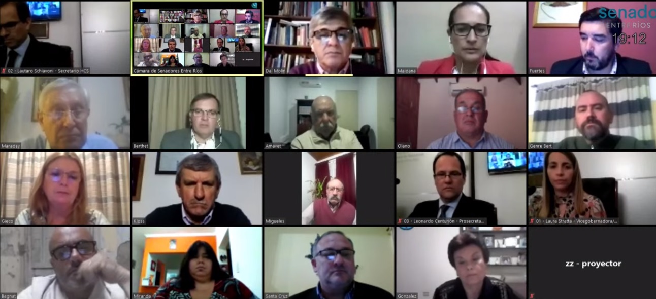 Con esta novedosa modalidad que se aplica en cuerpos colegiados de todos los niveles, a los efectos de respetar las disposiciones de las autoridades sanitarias de cada jurisdicción y mantener el funcionamiento de las Instituciones de la democracia, sesionó esta tarde la Cámara de Senadores de Entre Ríos.
