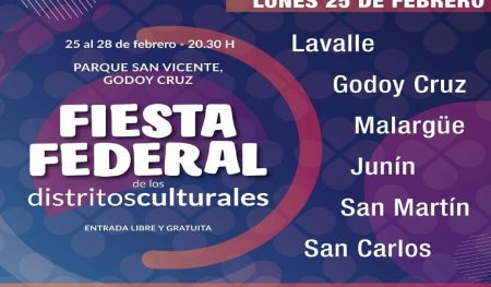 Desde este lunes hasta el miércoles 28 de febrero, Entre Ríos participará de la Fiesta Federal de Distritos Culturales que se hará en el parque San Vicente en Godoy Cruz, Mendoza, en el marco de los festejos de la Fiesta de la Vendimia 2019.