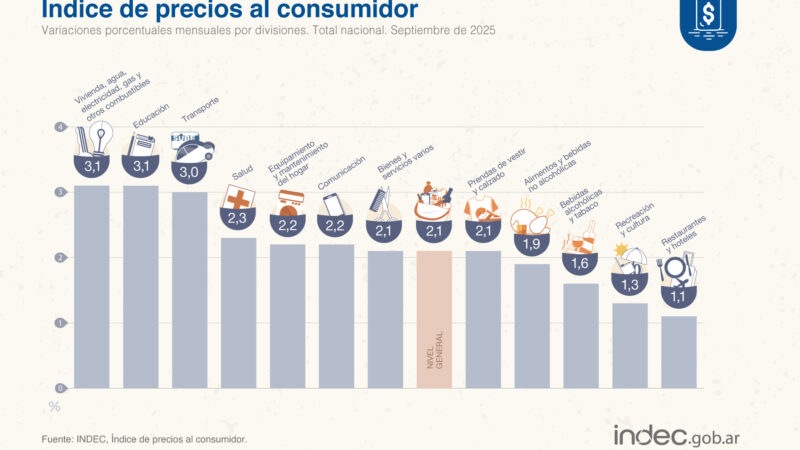 Los precios al consumidor (#IPC) aumentaron 2,1% en septiembre de 2025 respecto de agosto y acumularon un alza de 22% en los últimos nueve meses https://t.co/z8pxJaAazE pic.twitter.com/y0Z0iK1oVJ— INDEC Argentina (@INDECArgentina) October 14, 2025