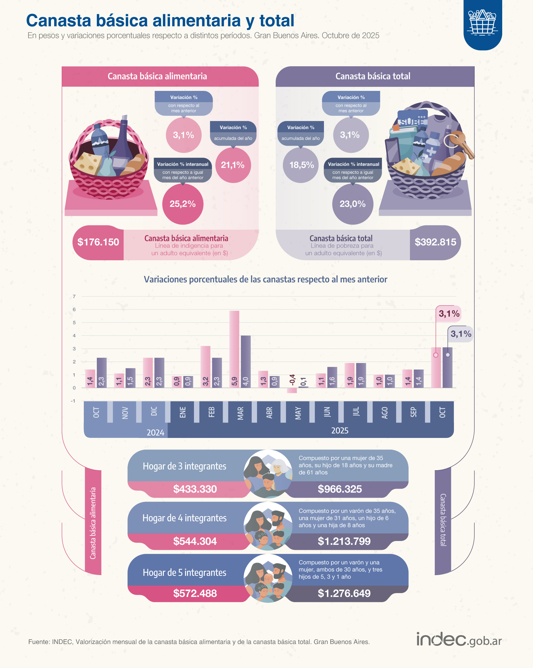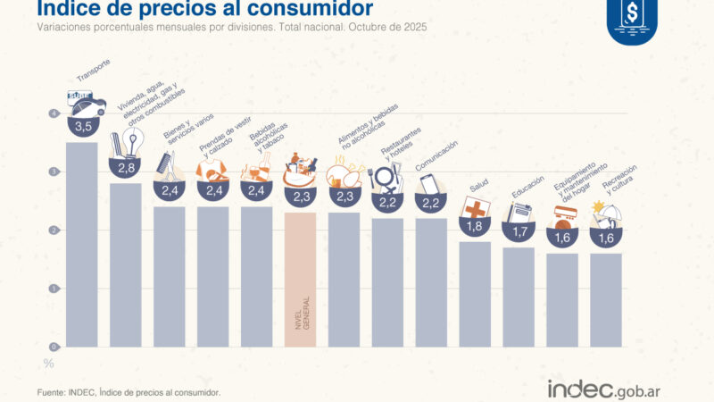 Los precios al consumidor (#IPC) aumentaron 2,3% en octubre de 2025 respecto de septiembre y 31,3% interanual. Acumularon un alza de 24,8% los primeros diez meses del año https://t.co/NVJNbJ7hd4 pic.twitter.com/C1CzQspT3c— INDEC Argentina (@INDECArgentina) November 12, 2025